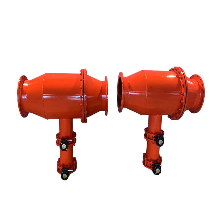 安装此装置时切记排渣过滤网一定要竖直向下,使其在无外力作用下能够依赖自重将管口紧盖住,蝶阀门应该在装置的下方,如果条件允许,在排水阀门下接一个排水管路,将排出的渣质手动排除。